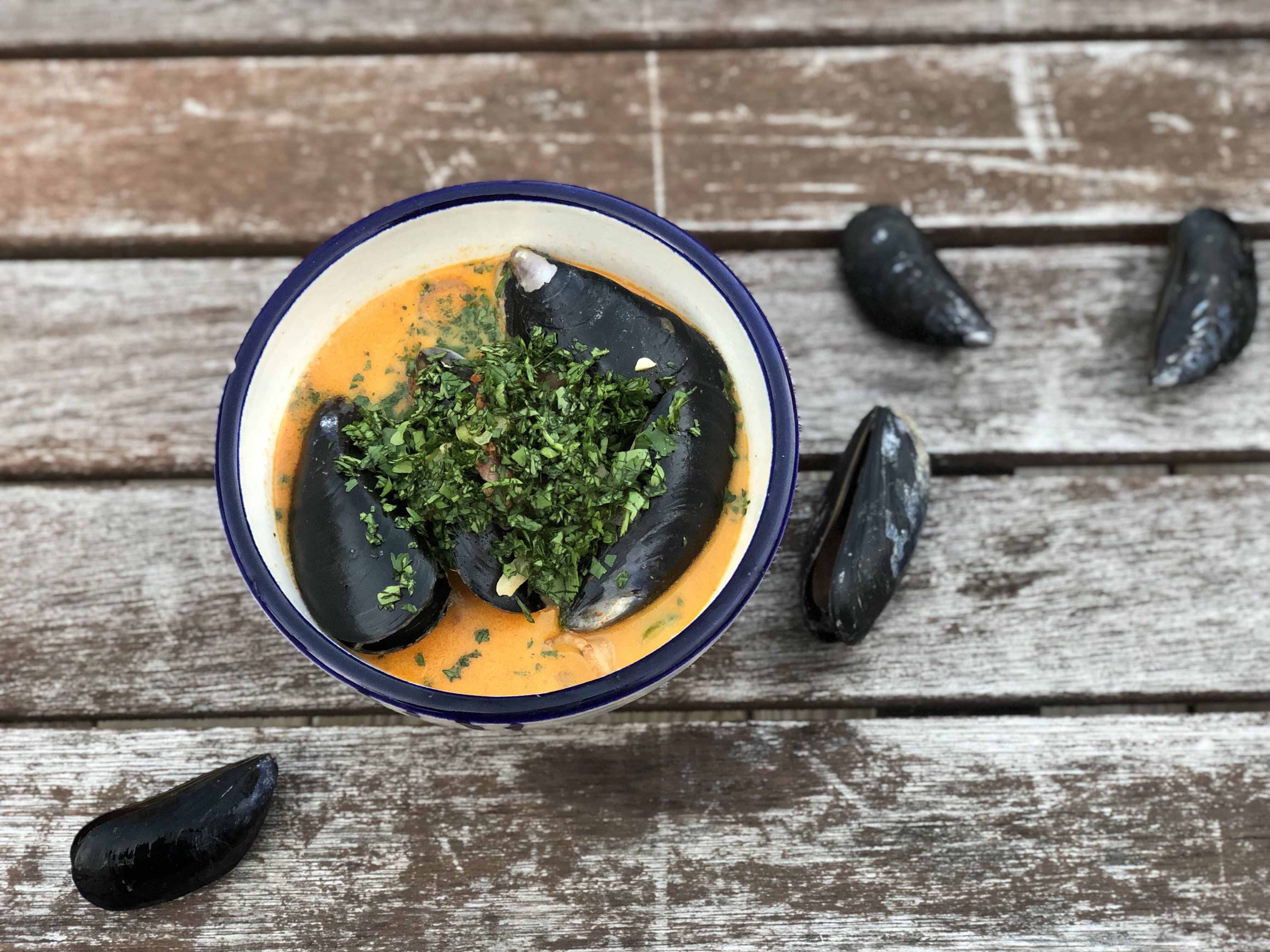 - Mussels (Clean by removing the beard and scrapping of any impurities)