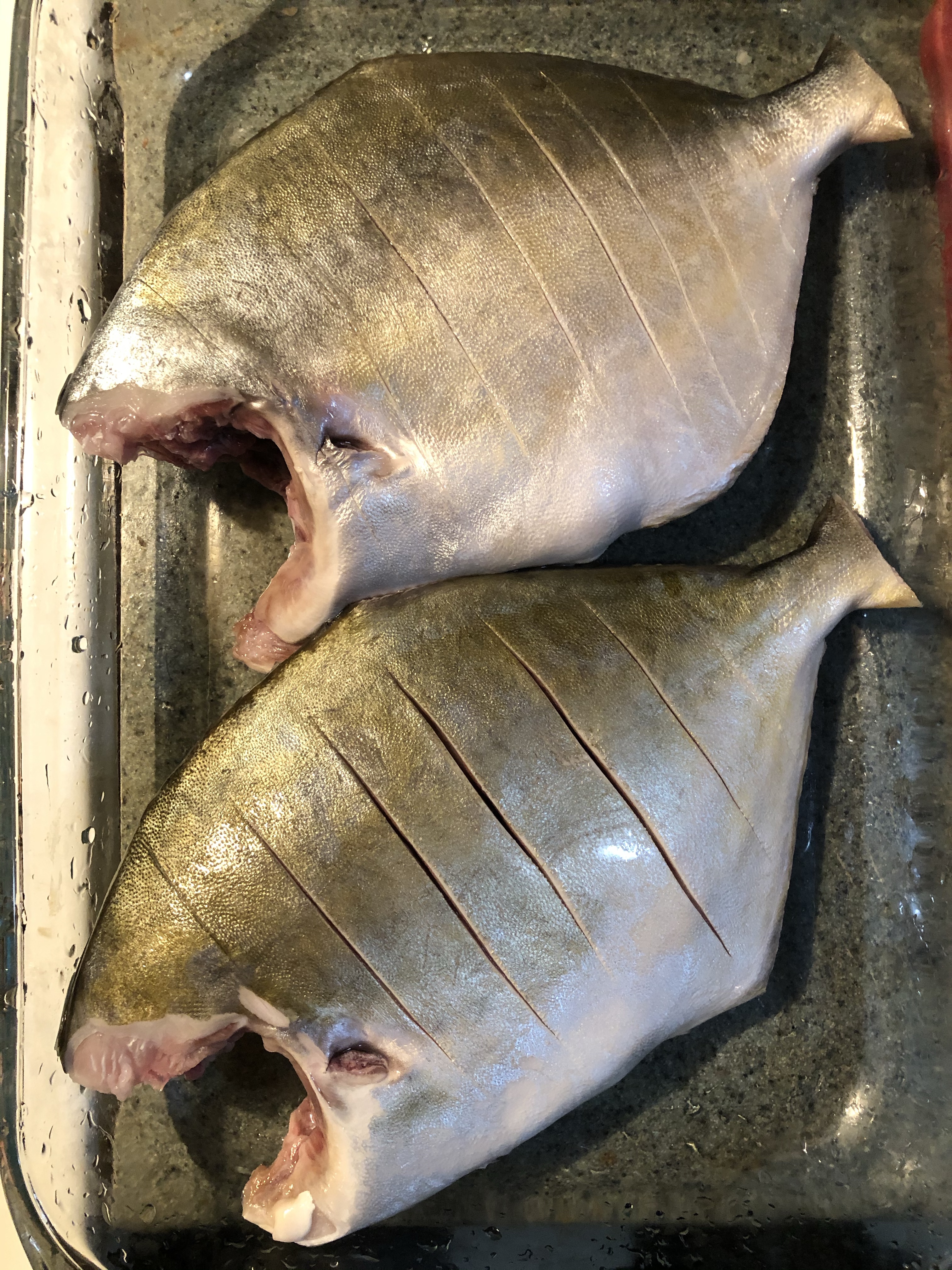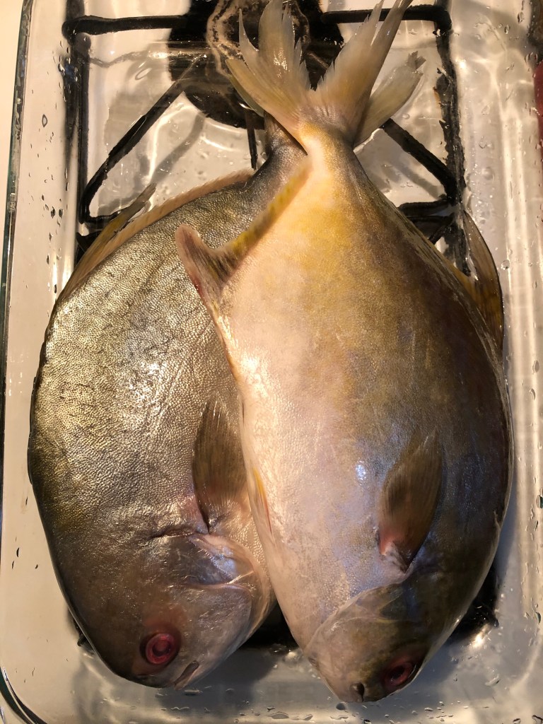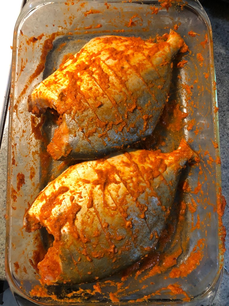 Marinate the fish with salt, 1/2 tablespoon chili powder, 1/2 teaspoon turmeric powder, 1/2 tablespoon of ginger garlic powder and a tablespoon of vinegar for at least 30 minutes or overnight.