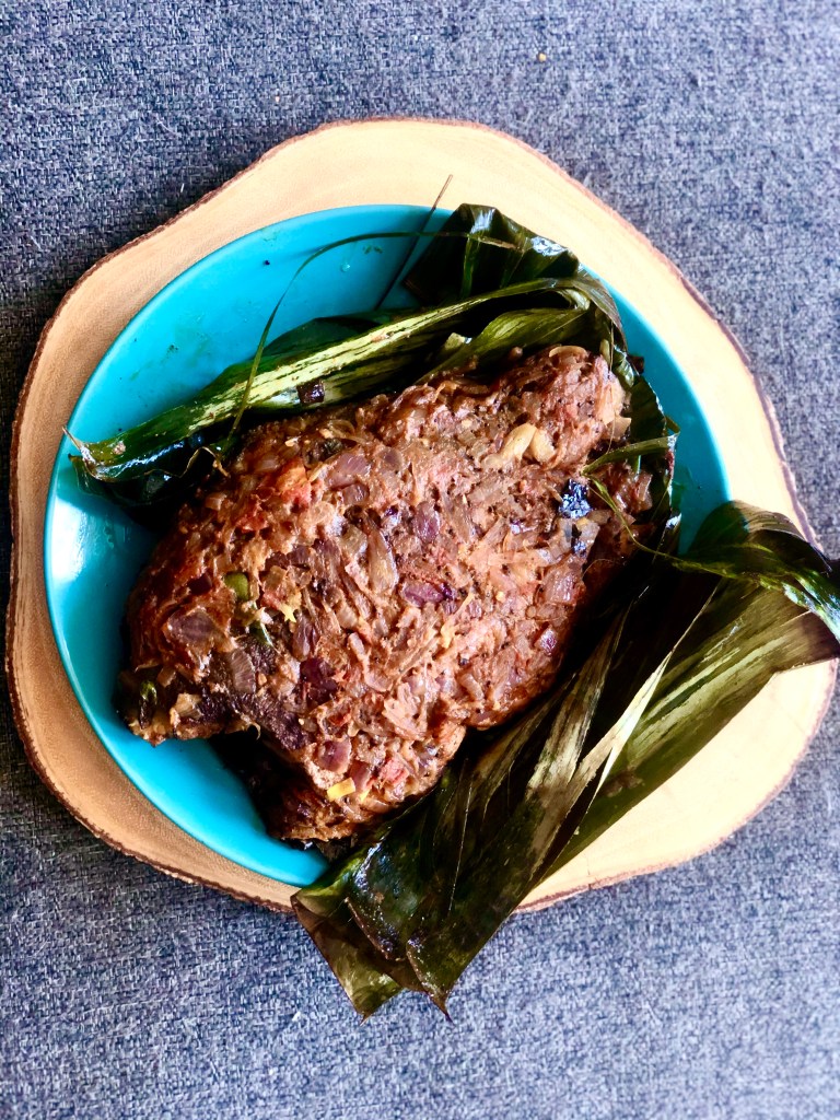 To make the banana leaves more malleable, carefully heat it over the gas hob on both sides for 30 seconds each.