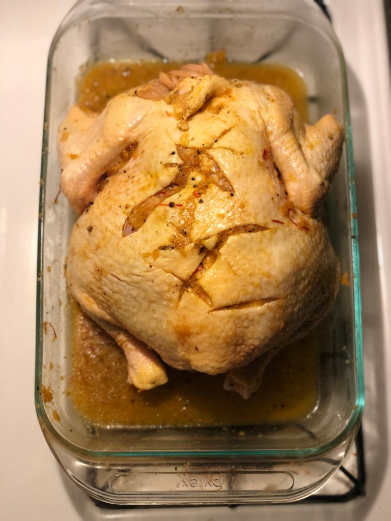 - Chicken (Roasting chicken; I got a 7.2 lbs chicken)