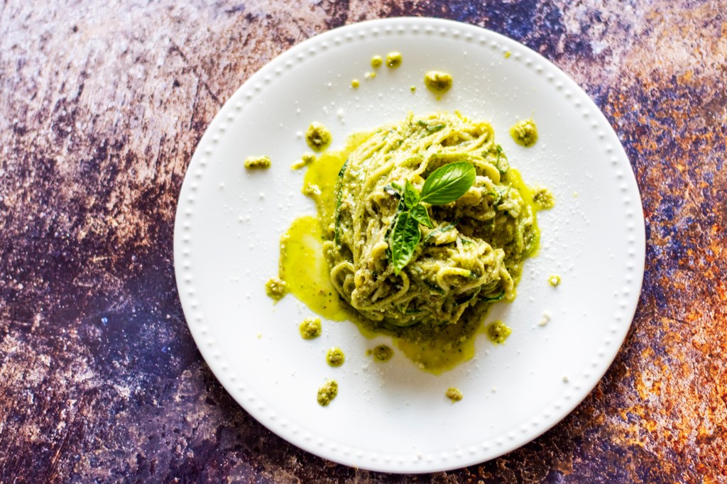 In a blender, add the avocado, walnut, basil leaves, garlic, lemon juice, salt and pepper and pulse it till it’s fine and then gradually add the olive oil into the blender till you have a fine paste. Finally, add the Parmesan cheese and blend it for another minute.