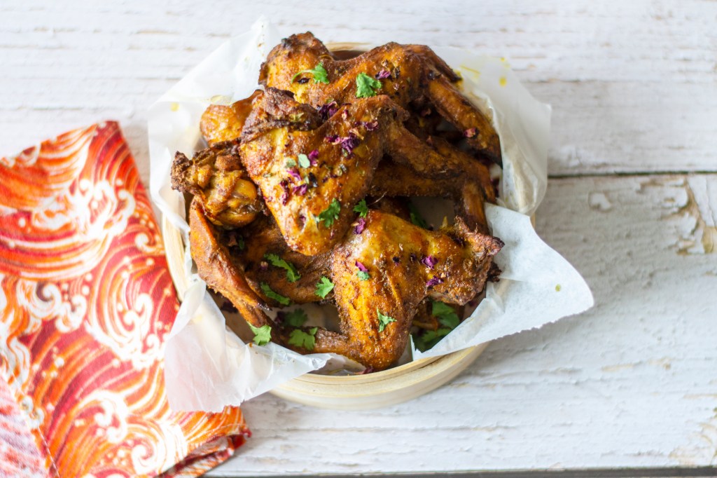 Now, mix all the spices together along with the saffron water in a large bowl and then add the chicken wings in it and coat the wings evenly. Let the wings marinate at least for 2 hours.