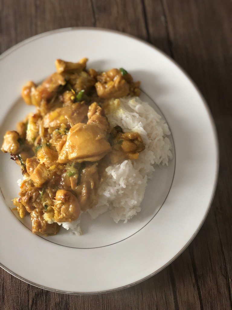 Cover the base of a wok with oil and place it on high heat until smoking hot, then add the chicken into the wok and let it fry for a minute or two before turning them over to cook through. Once the chicken starts browning all over, push the chicken to the sides to form a well in the center. Add the rest of the lemongrass paste into the wok and cook for 2-3 minutes stirring occasionally.